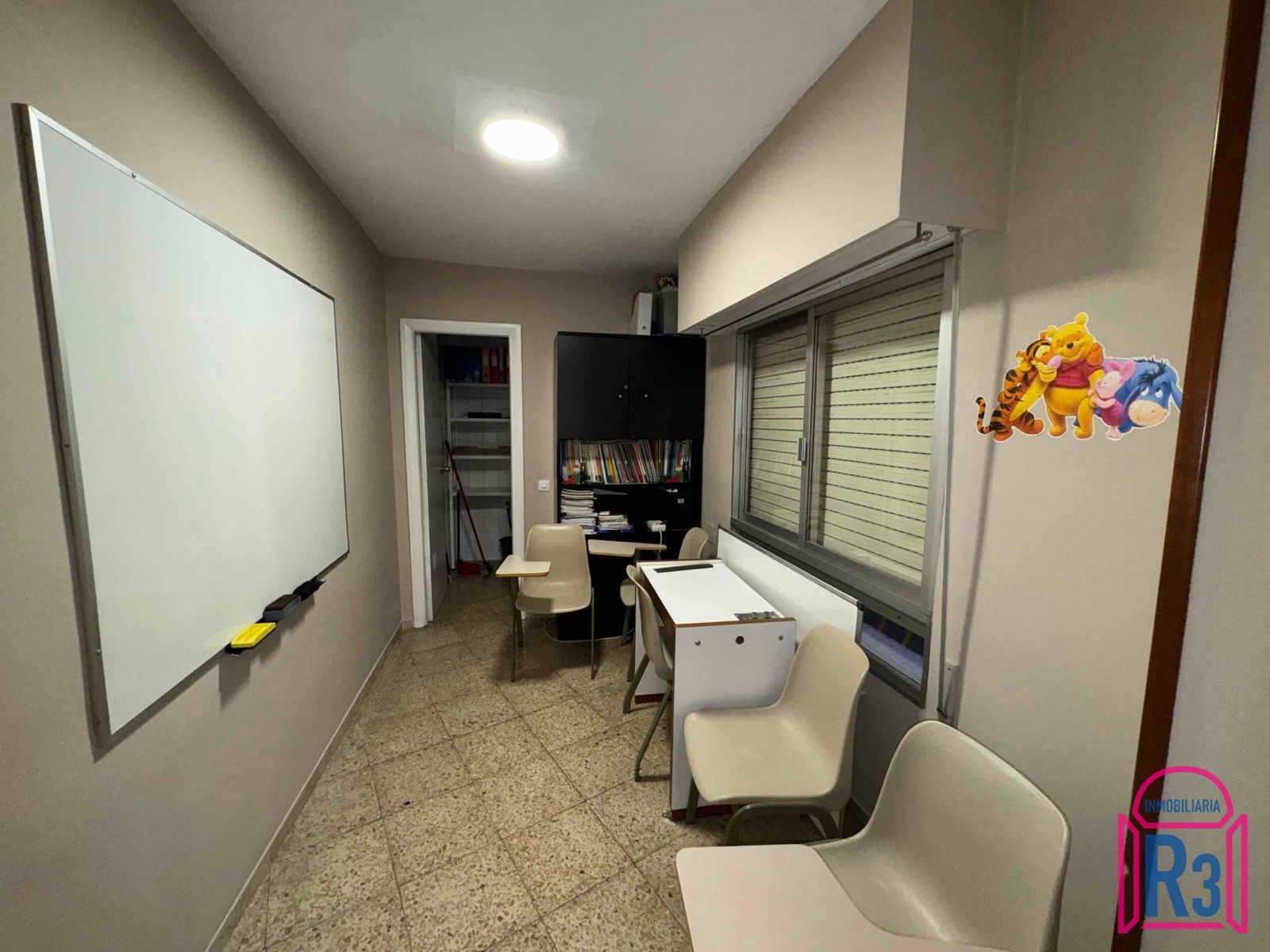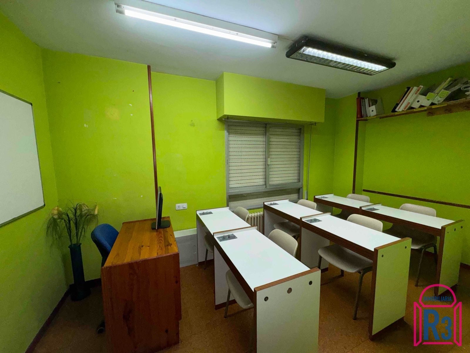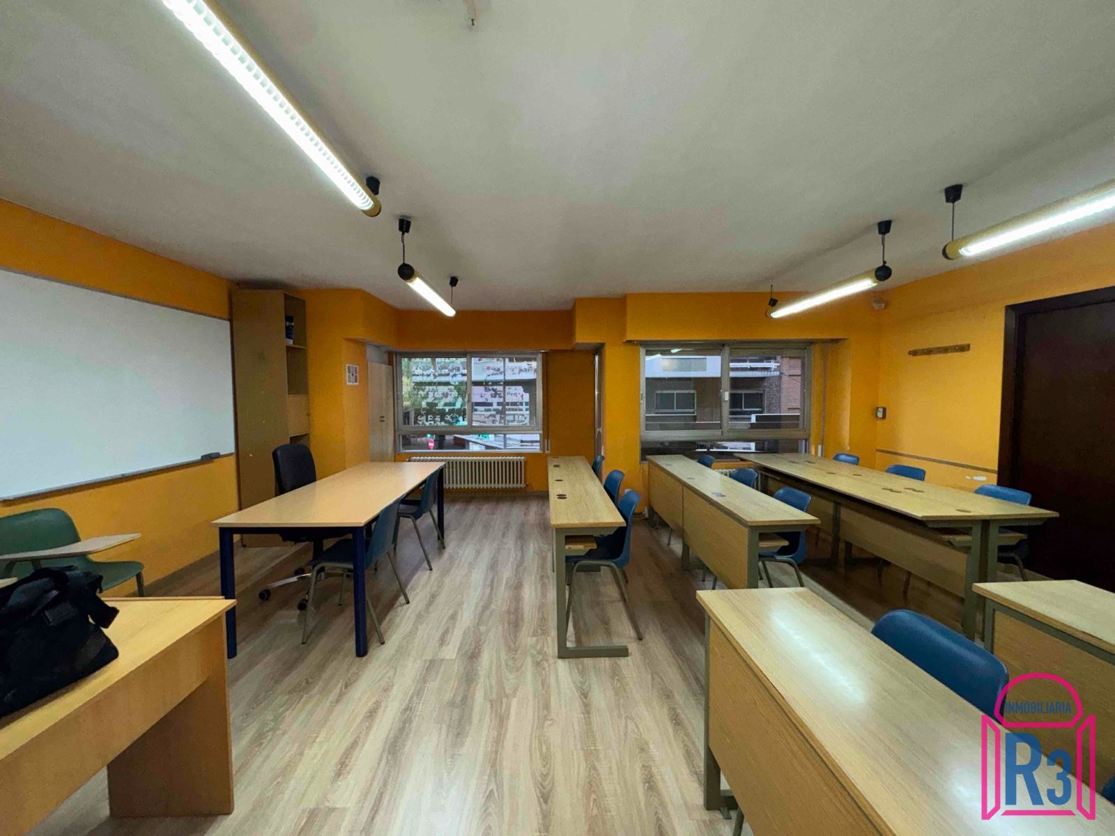 Se alquila oficina de 144m². Está acondicionada y equipada como academia. Tiene 7 aulas, 2 aseos, archivo, ascensor y terraza. Calefacción central. Gastos fijos de comunidad incluidos. Certificado energético: en trámite.