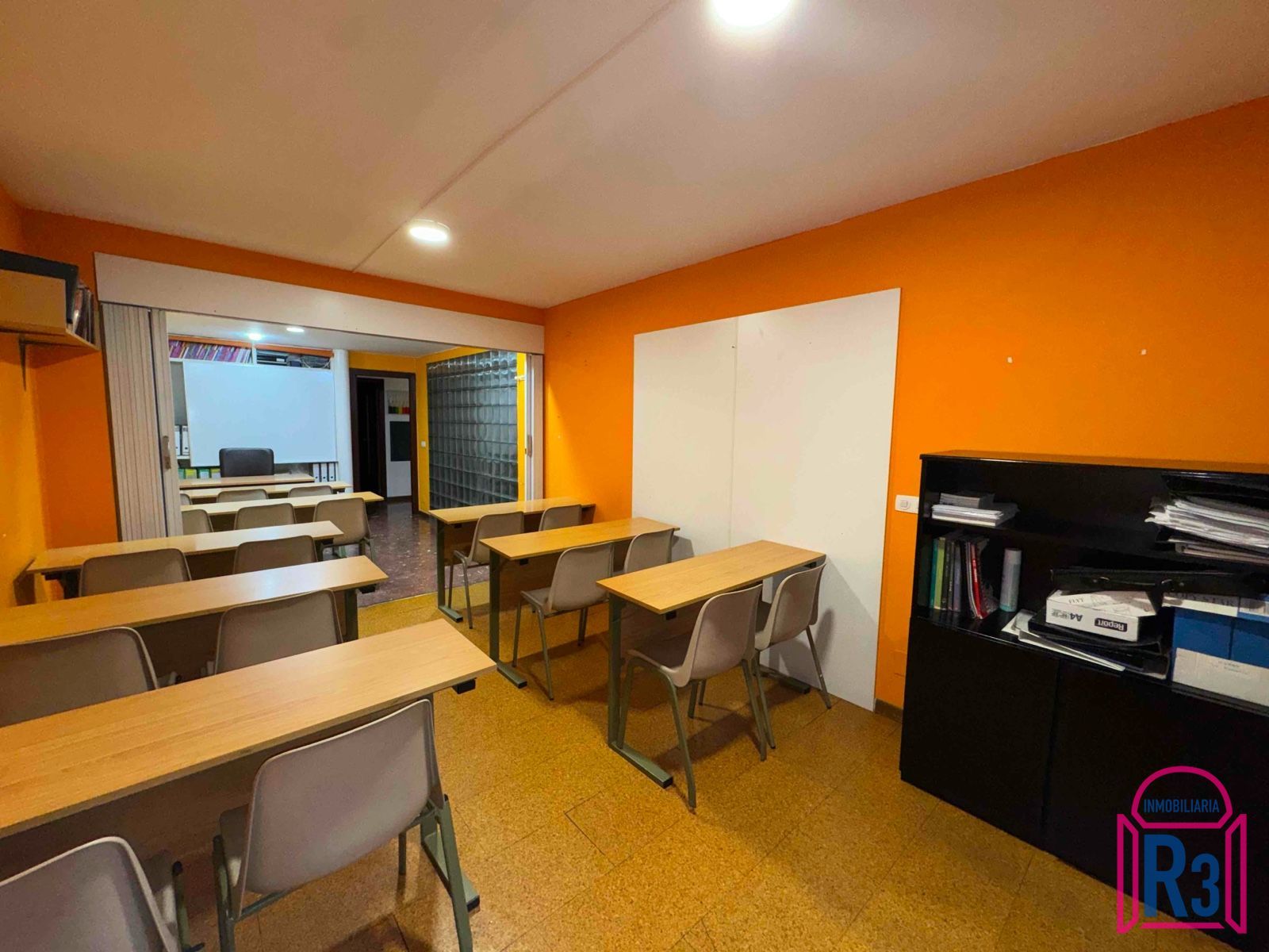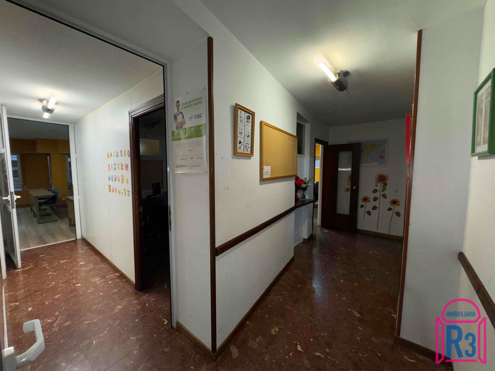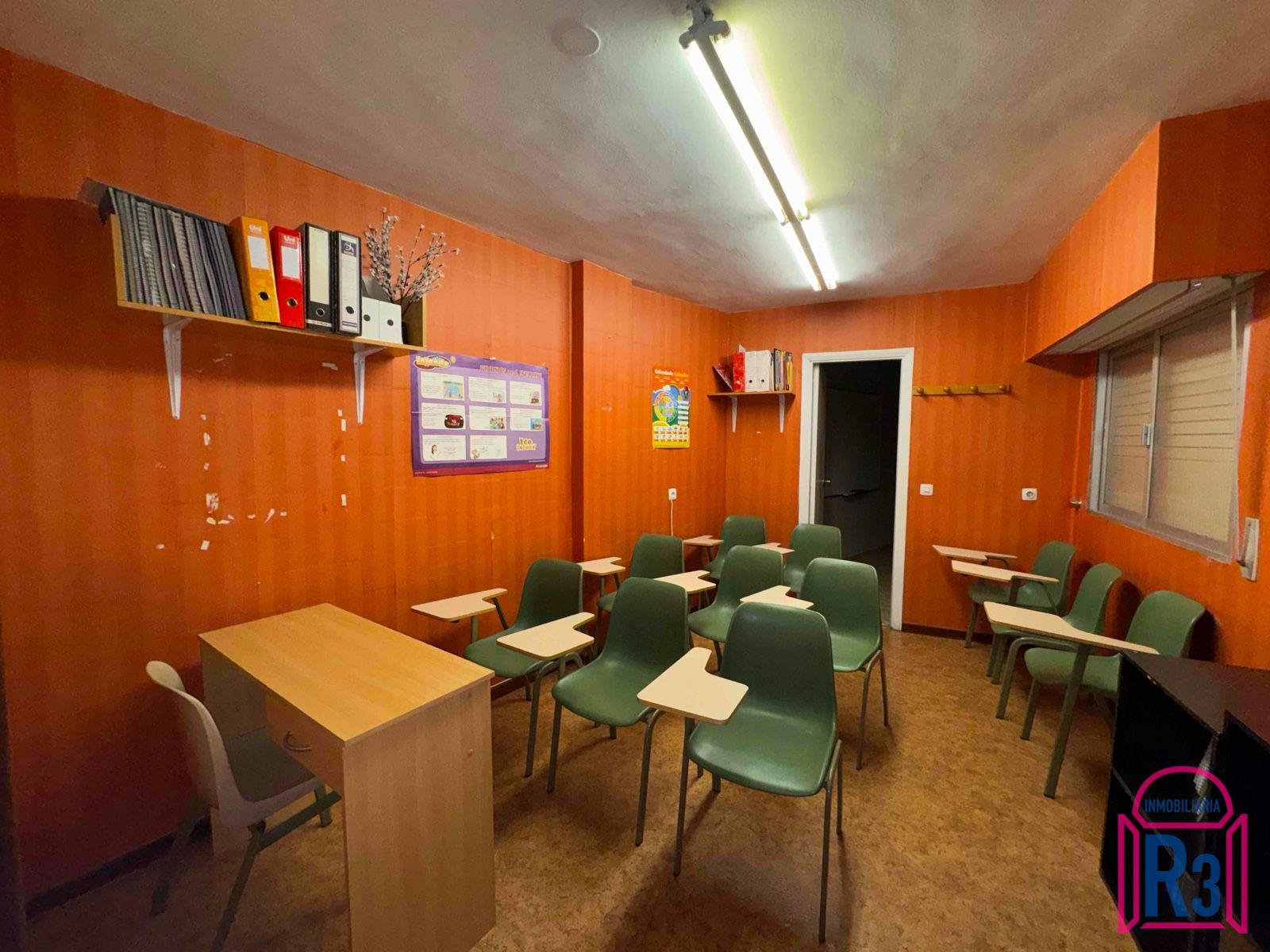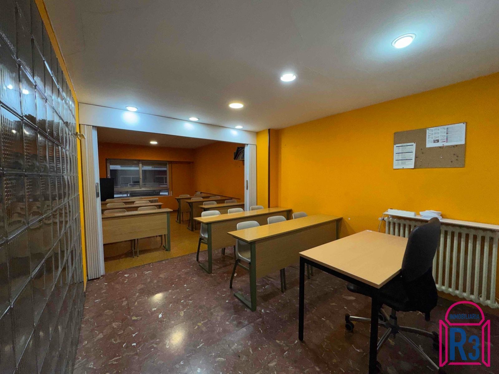 Se alquila oficina de 144m². Está acondicionada y equipada como academia. Tiene 7 aulas, 2 aseos, archivo, ascensor y terraza. Calefacción central. Gastos fijos de comunidad incluidos. Certificado energético: en trámite.