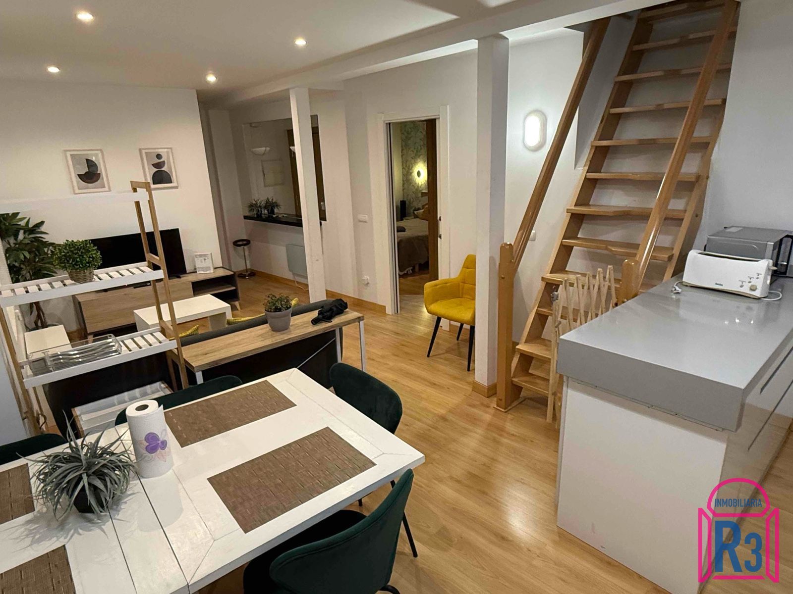 Apartamento amueblado de 50m², 2 habitaciones, 1 baño, salón, cocina americana amueblada y equipada, bohardilla de 20m² y ascensor. Garaje opcional por 100€ a mayores en parking plaza mayor. Calefacción eléctrica. Gastos de comunidad incluidos en la renta. Certificación energética: F. NO SE ADMITEN ANIMALES. Plaza Mayor