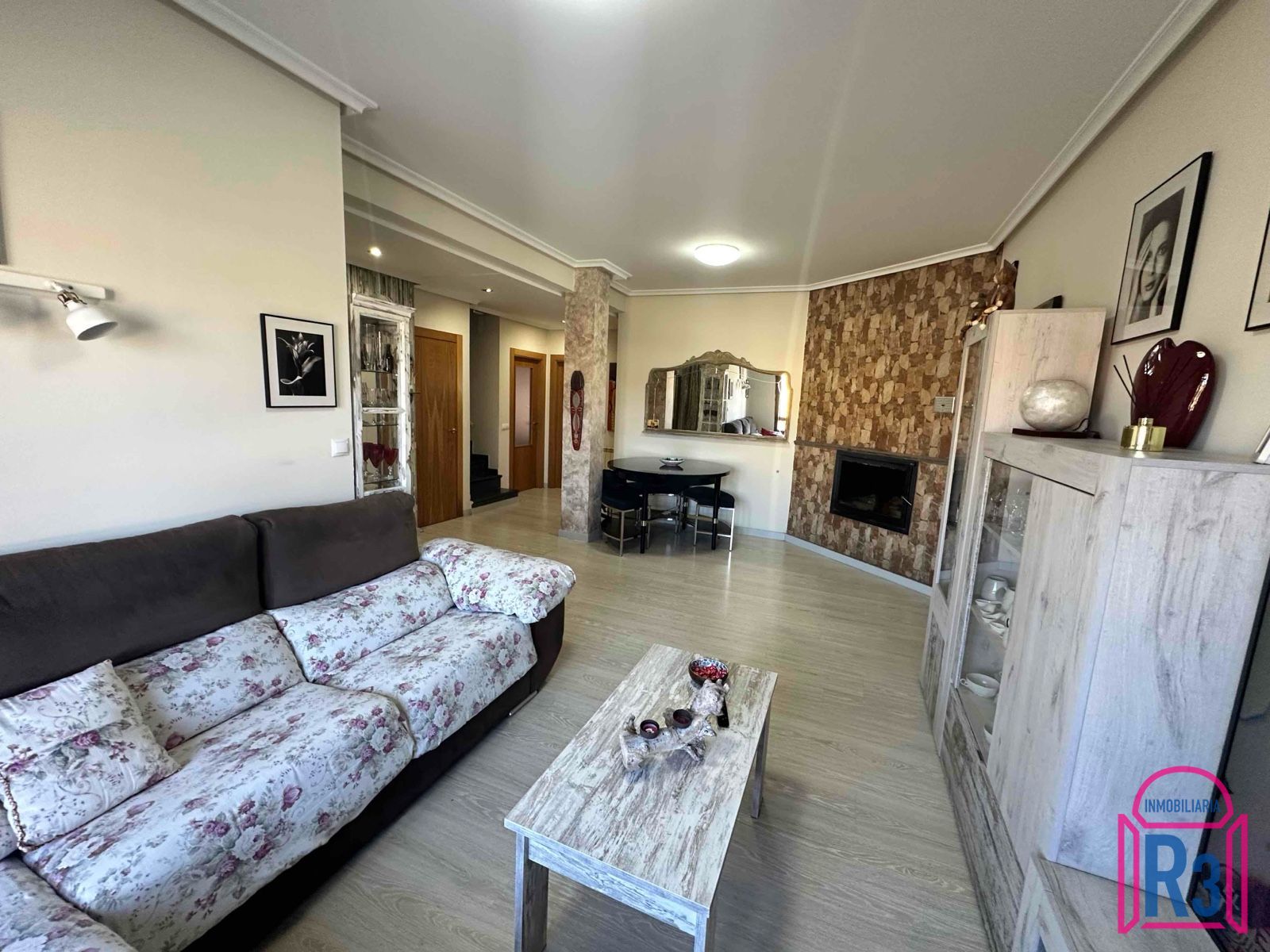 Casa adosada de 220 m² con 4 habitaciones (1 planta baja), 2 baños, aseo, salón, cocina amueblada y equipada, jardín, garaje para 1 coche y bodega. Calefacción de gasóleo individual. Estado certificación: En trámite.