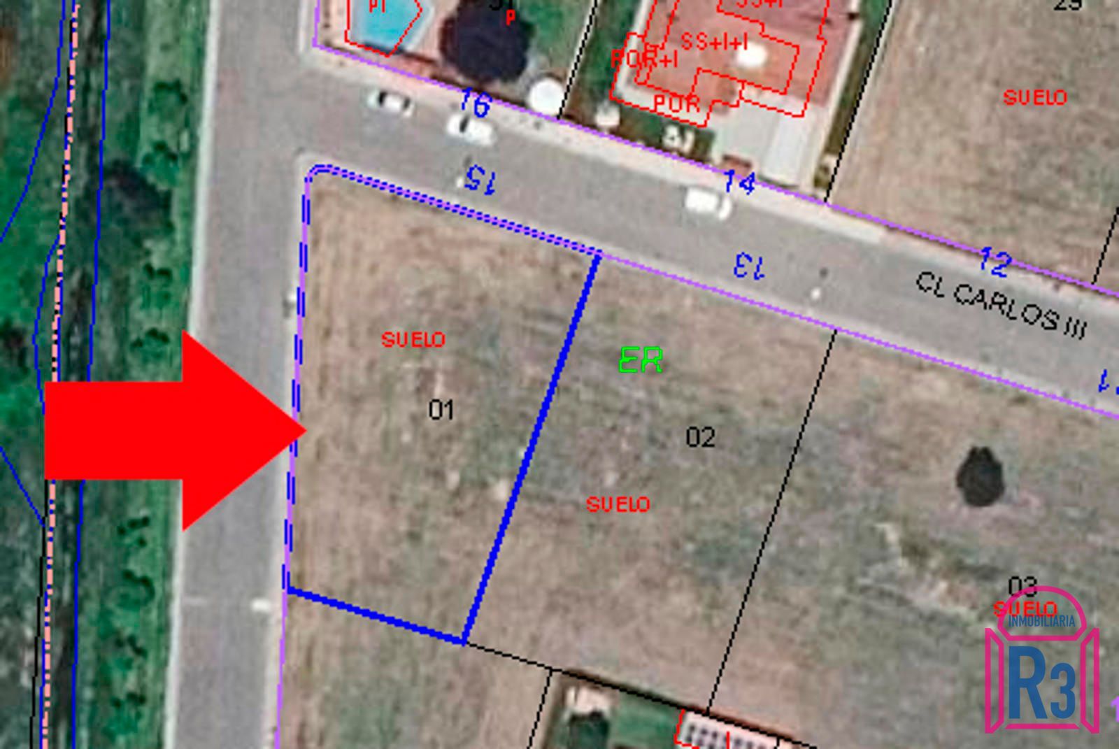 Se vende parcela en El Caminón de 781 m². Tiene 60 m de fachada haciendo esquina.