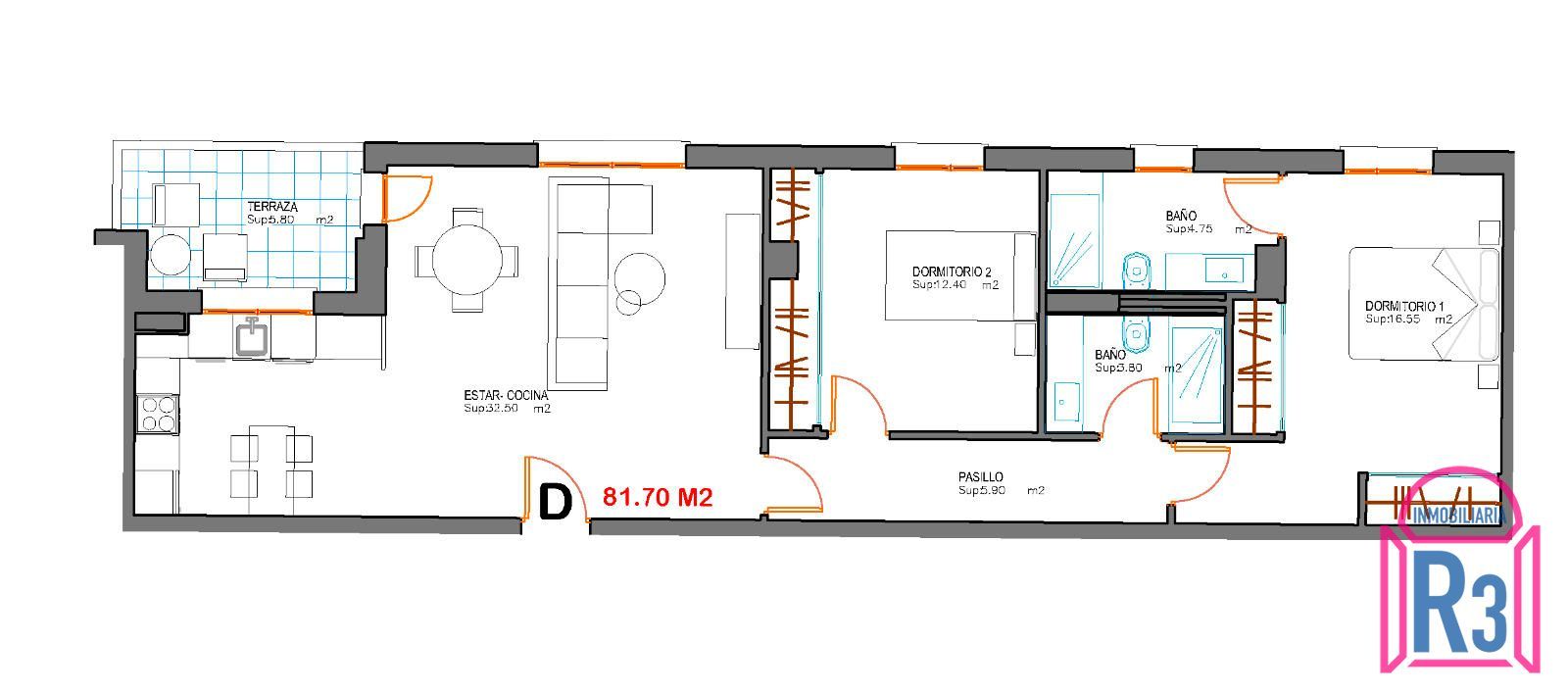 Ref. 22070 |  101 m2 | 2 Habitaciones |  2 Baños