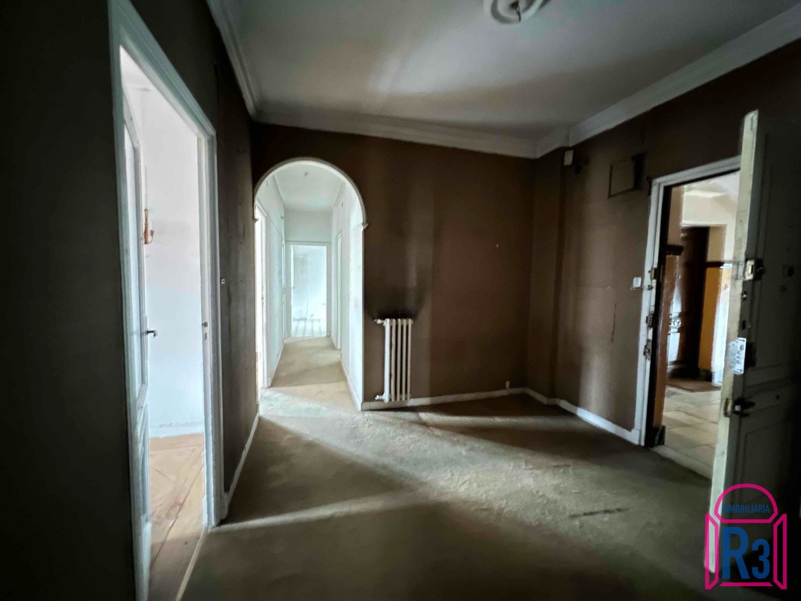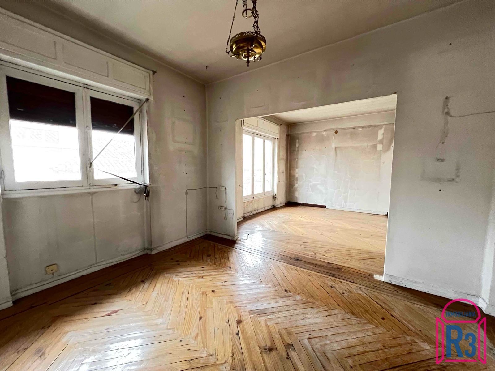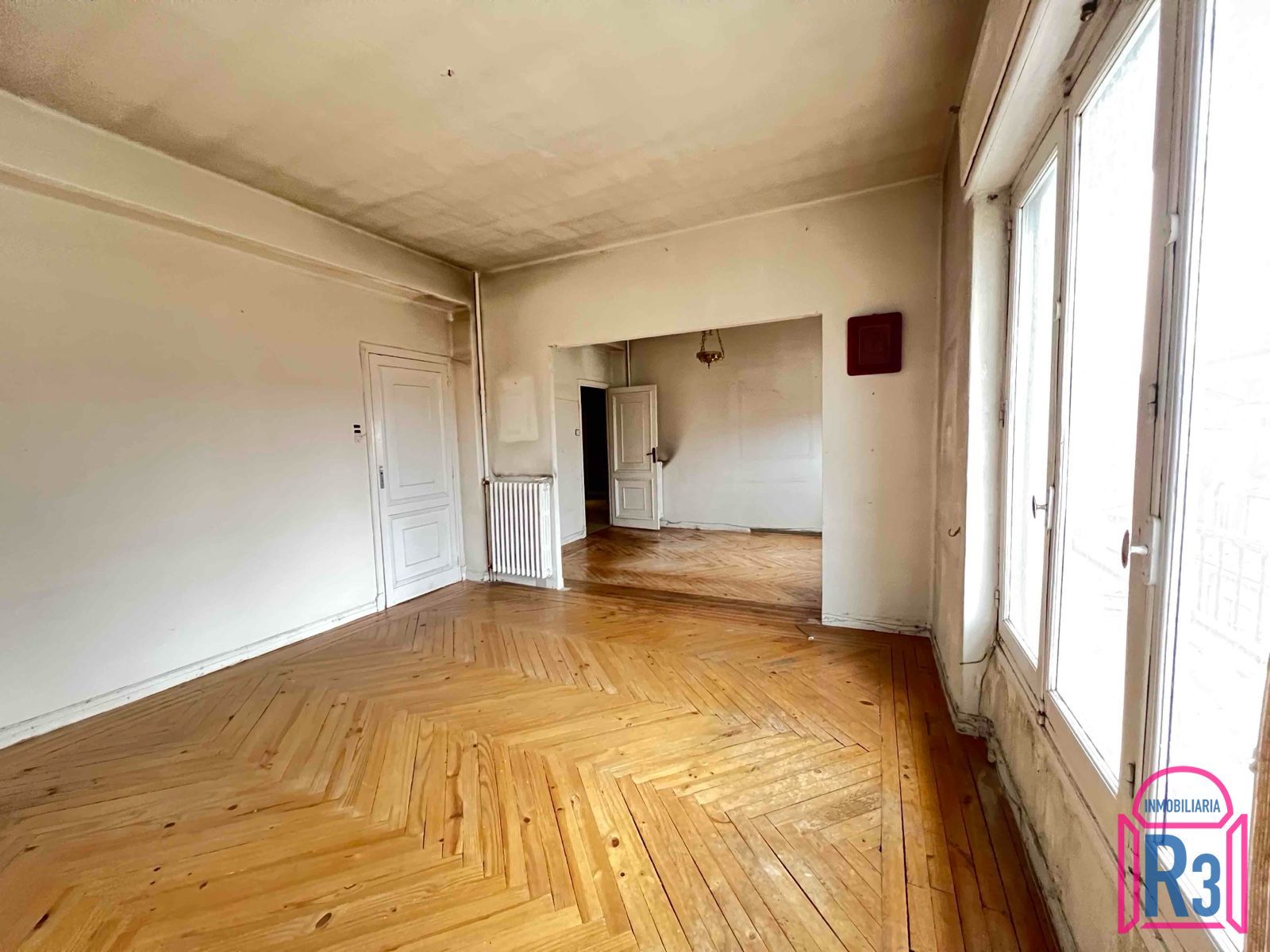 Piso alto de 140 m² para rehabilitar con 6 habitaciones, 2 baños, salón, cocina, trastero y ascensor. Buena distribución, casi todo exterior. Edificio antiguo con techos altos, al lado de Ordoño II. Calefacción central. Certificación Energética: En trámite.