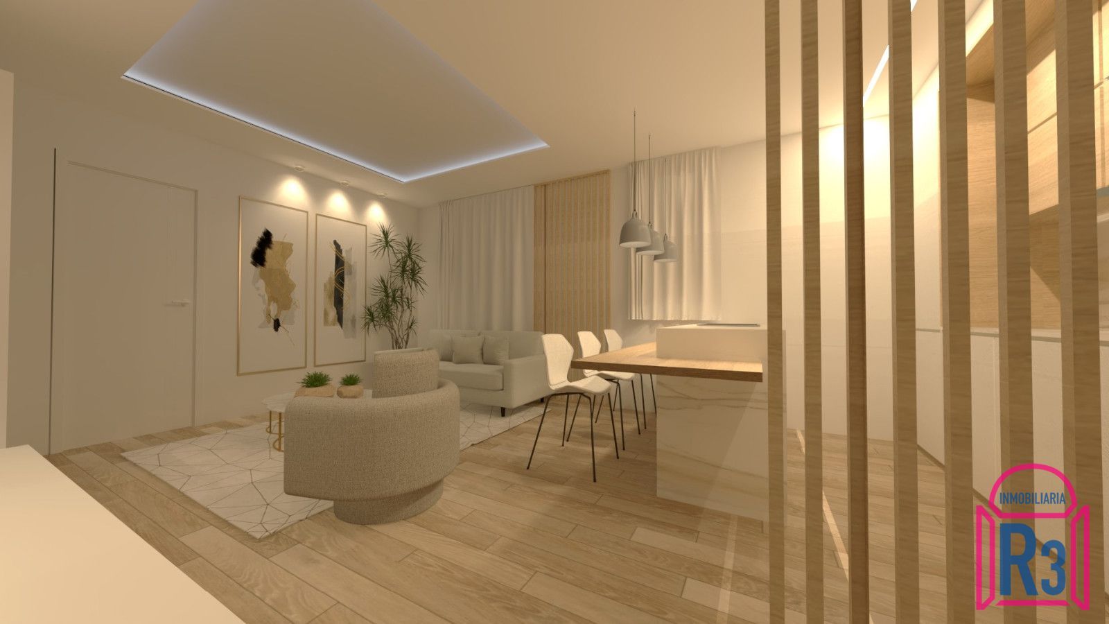 Apartamento en la Calle Miguel Zaera. Tiene 2 habitaciones, salón-cocina y 2 cuartos de baño. Son 55,15 metros útiles, dispone de un trastero en la planta baja y un amplio patio de uso y disfrute. Edificio completamente restaurado, se ha dotado de ascensor, se están haciendo todas las instalaciones nuevas, fachada, aislantes, accesibilidad, portal...y las viviendas también se están restaurando interiormente desde cero: Ventanas de doble cristal, puertas lacadas en blanco, armarios empotrados vestidos, suelos laminados, baños (incluido el mueble de lavabo), instalaciones de fontanería, instalaciones de electricidad e iluminación (incluidos los focos), internet, calefacción (individual de gas), etc. Plaza de garaje opcional (no incluida en el precio).